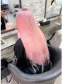 前回原色のムラサキからリタッチと全頭ブリーチをしてその後バージンレミーエクステ40枚をつけて長さだしをしエクステごと染めてホワイトピンクに♪