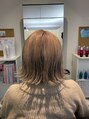 ブリーチ+イルミナカラーで作るホワイトベージュです。カットは切りっぱなし系ボブで、外ハネスタイリング^_^