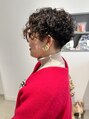 短めなショートヘアにパーマスタイル。くるっとふわっとするパーマです。
