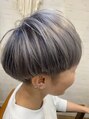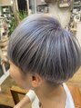 人気のグレー系カラーです。マッシュスタイルで、根元グレーからのシルバーカラーです。