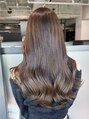 グレージュカラー美髪レイヤーロングカーキベージュ_ba491911