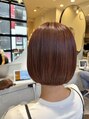 丸みのある可愛いボブです。髪質改善カラーで艶々で潤いのある仕上がりに!カラーは人気のピンクブラウンで艶感UP