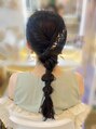 結婚式 二次会 お呼ばれ 編みおろしポニー×銀箔
