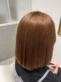 カットは顔周りにレイヤーを入れつやつやボブに☆カラーはオレンジミルクティー、インナーカラーはホワイトイエローに^_^ハイトーンカラーのサラつやボブスタイルかわいいですね♪