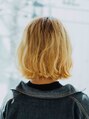 外はねでスタイリングすることで、抜け感を作れます。そして、バングなしのスタイルより柔らかさが出ます。カラーリングはケアブーリーチでダメージを最小限にハイトーンを楽しみましょう!!【岡山/錦町/ハレマチ通り)