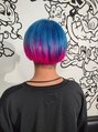 段のついたカットに短い部分を青、下をピンクに染めることでインナーカラーでありつつ、グラデーションにも見えるカラー