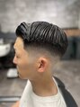 洗い流しが楽な水溶性のポマードを使用。ツヤ感がしっかりとありつつホールド力も強い。お客様ご自身でのセットが楽になるカットを心掛けています〈横浜/メンズカット/フェードカット/スペインカール/横浜駅/川崎駅/スキンフェード/メンズパーマ/濡れパン〉