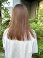 最近イチオシのオレンジベージュカラー。ナチュラルな明るさにツヤをしっかり加えた色味でどの角度から見てもキレイな髪に見えます。毛先は適度に軽さのあるカットにして爽やかな印象に。