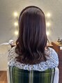 【ライラック】×【オークル】で人気のピンクベージュに♪濃いめのライラックでピンク感アップ☆お顔周りに段差をつけてくびれ感もアップ☆ミインカールを付けてアイロンでスタイリング☆ツヤ感のあるスタイルに仕上がります♪