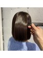 トレンド感のあるミニボブに柔らかいブラウン系カラーに!赤みを抑えたカラーになるので色落ちも柔らかく!髪質改善でダメージを抑えながら艶々にしております!