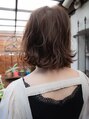 全体的に切りっぱなしボブのスタイルにカットし表面にレイヤーが入っている可愛過ぎないぬけ感のある大人っぽいスタイルです。アッシュ系の色にすることで透明感を出し重過ぎない軽い印象を与えてくれます。いつもの雰囲気をあけたい方に提案しやすいスタイル
