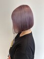 肩上ワンレンボブにカットし、2ブリーチ後、12レベルのアメジストをオンカラー。仕上げはアイロンでツヤツヤに♪