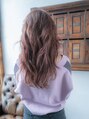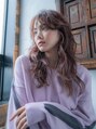 ラウンカラーのロングヘアにパーマ風の巻きを加えたヘアスタイルになっています。前髪や後ろの髪をコテで巻いて動きをつけることで顔まわりに空間を作り顔周りの印象を明るく華やかに見せるスタイルになっています。
