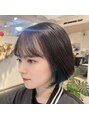 ダークグリーンのインナーカラー♪ふだん目立ちすぎないインナーカラーがいい方にオススメのお色です!上の髪を耳にかけるとしっかり分かります(^^)