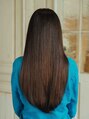 重めなシルエットのロングスタイル。毛先が内に収まりやすいように、しっかりと前上がりのラインでカットしています。乾かすだけでまとまるスタイルです。サイドや顔まわりのレイヤーを増やすことで、重めだけど軽さのあるスタイルになります。