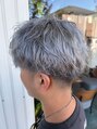 ツーブロックでマッシュでカットして全体にツイストスパイラルでパーマをかけています。カラーはブリーをしてグレーのカラーを入れています【髪質改善/オーガニックカラー/デザインカラー/ハイライト/インナーカラー/白髪ぼかし/ヘッドスパ/トリートメント】