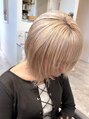 - ぱつっとボブ 顔周りレイヤー グレーベージュ ベビーピンク ニュアンスカラー ミルクティーピンク