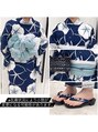 手ぶらでご来店頂けます♪(髪飾りは販売もございますが、こだわりがある場合はお持ち下さい。)レンタル期間1泊2日なので急いで返す必要なし♪20代後半お姉様にオススメ♪深めの紺に柄と帯で抜け感を出して重すぎない感じが絶妙♪163センチ以上の方にオススメ