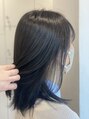 全体的にナチュラルなグレージュでイヤリングカラーはブルーブラックです。髪色が赤味が出やすいので抑えながらカラーリングしています。光にかざすととても透明感が出てキレイです。