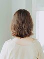 切りっぱなしボブ スタイルにウエーブをつけたスタイルです☆ナチュラルなウェーブを作りオイルでさらっとスタイリング。ウエットな質感と束感で綺麗めスタイルに作っています。前髪はかきあげセンターパートで大人めのスタイルになります。