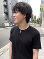 men's/スパイラルパーマ×ハイライト長さは整えて毛量調整がベース。カラーは暗めブラウンベースにハイライト、スパイラルパーマでより動きに立体感を出したスタイル!※ハイトーン、ハイライトが残っている方のある方お断りする場合がございます。