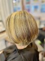 - 小顔カット メッシュブリーチ グレージュカラー 水素TR【髪質改善/カット/カラー/ショート/ボブ/】