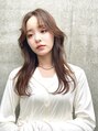 顔まわりレイヤーとカーテンバング明るめのヘーゼルブラウン
