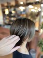 ハイライトカラーのショートボブにアッシュグレーの色味を入れてみました。
