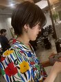 伸ばしかけの方におすすめ ハンサムショート。タイトなハンサムショート。首周り 耳周りの毛量調整して夏場にスッキリメンズライクのような 少し女性らしさもあるショートスタイルです。