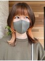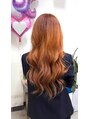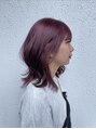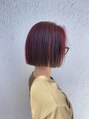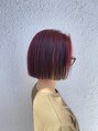根本はブリーチのリタッチをしてアンブレラカラーにしました表面はできるだけ赤く、内側は暗くしました!しっかりコントラストをつけることで写真映えします平行ラインの切りっぱなしにカットしています!