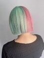 ペールピンクとミントグリーンのツートンカラー♪あなたの好きなカラーでツートン楽しみましょう^ ^こちらはブリーチ2回~3回以上必要です。■トリプルカラークーポンを選択して下さい。
