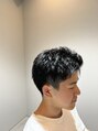 暑くなってきたので、サッパリショートヘアに!サイドは4ミリのバリカンでツーブロックにして襟周りも短く刈り上げました。前髪を上げやすいように眉が少し見えるくらい短めにカットし、ドライヤーセットとワックスだけで動きが出るように調整しました。