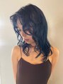 ナチュラルかわいい暗髪つやミディウルフ無造作パーマ