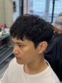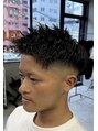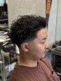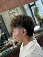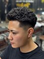 スキンフェードにツイストパーマの王道スタイル。焼けた肌にバッチリ合ってます!doorsのpomadeで艶を出して完成です。