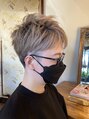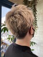 動きのあるツーブロックショートです。カラーは前回ハイブリーチにアッシュ系をオンカラーしたので、今回はそれを生かしたスタイルに。