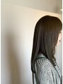 柔らかいオリーブベージュカラーです。ブリーチ無しでも繰り返し明るい色を入れていくことでより透明感のある色味が入りやすくなります顔まわりにレイヤーのあるデザインで長めレングスでも重くなり過ぎないデザインです