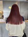 ぱつっと前髪に顔周りもポイントで切ってます!柔らかく透けるピンクがとてもキュートです!
