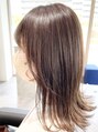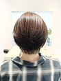 緩やかに前上がりラインのミディアムボブスタイル。お顔周りにレイヤーが入った内巻きにしやすいスタイルです◎