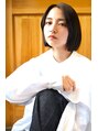 顎ラインのナチュラルボブ。前髪は長めにセンターパートで分け、大人っぽいイメージに。カラーリングで柔らかいイメージにも施術可能◎