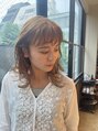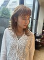 くせ毛を活かした、ハイトーンベージュのセミロングヘア。髪の内側にオイルをたっぷりなじませてスタイリング。くせ毛の柔らかい動きが素敵です