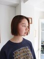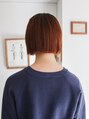 カットラインはぱつんと。ワンレングスのミニボブです。カラーはオレンジヘアにして、今っぽさをプラス。