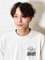 目周りで流すスパイラルパーマにツーブロックを入れて爽やかさもあるスタイルです!オイルとクリームワックスを混ぜて程よいツヤを出すのがポイントです!