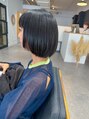 フェイスラインのみ前上がりミニボブ。襟足をギリギリにカットしてスッキリさせて、顔周りのフェイスラインのみを前上がりにカット。フェイスラインを前上がりにする事でトレンドのミニボブになります◎ ボブに変化がほしい方オススメです◎