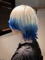 ブリーチ2回で作る【ホワイトカラー】ベースに発色の良い【ブルーグラデーション】を施したデザインカラー。