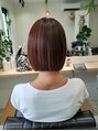 重めのボブから脱却!!長さを残してレイヤーを入れた軽めのショートボブに☆顔周りでぱつんとポイントでラインを作って少し個性を。