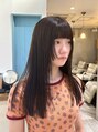 ぱつっと毛先にしっかりライン感を残した胸上ロング*お顔周りは重すぎない姫カットでトレンド感もプラス*前髪はお顔のまるみに合わせた重ためバングに*巻くのが苦手な方は潔くストレートでかわいいぱつっとスタイルもオススメです*