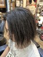超絶緩めのツイストパーマを施術髪の毛をマンバン仕様なのでサイドからバックにかけて1mmのバリカンで刈ってます。