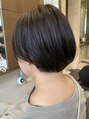 襟足はギリギリでカットし、表面に少しレイヤーを入れふんわり感を出したスタイルに仕上げました。カラーは赤みを抑えたオリーブ系に。