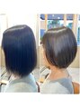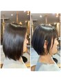 3カ月前の髪質改善ストレートが伸びて内側はクセ毛が伸び、重くなって面長なイメージになったので今回もメティオでクセ毛を伸ばし顎ラインまでスッキリ切って丸みのある可愛らしいボブに仕上げました◆髪質改善/縮毛矯正/前髪縮毛矯正/酸性ストレート