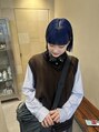 切りっぱなしボブ×ブルーカラー/ネイビーグレー/ぱっつん前髪/ホットペッパービューティー
